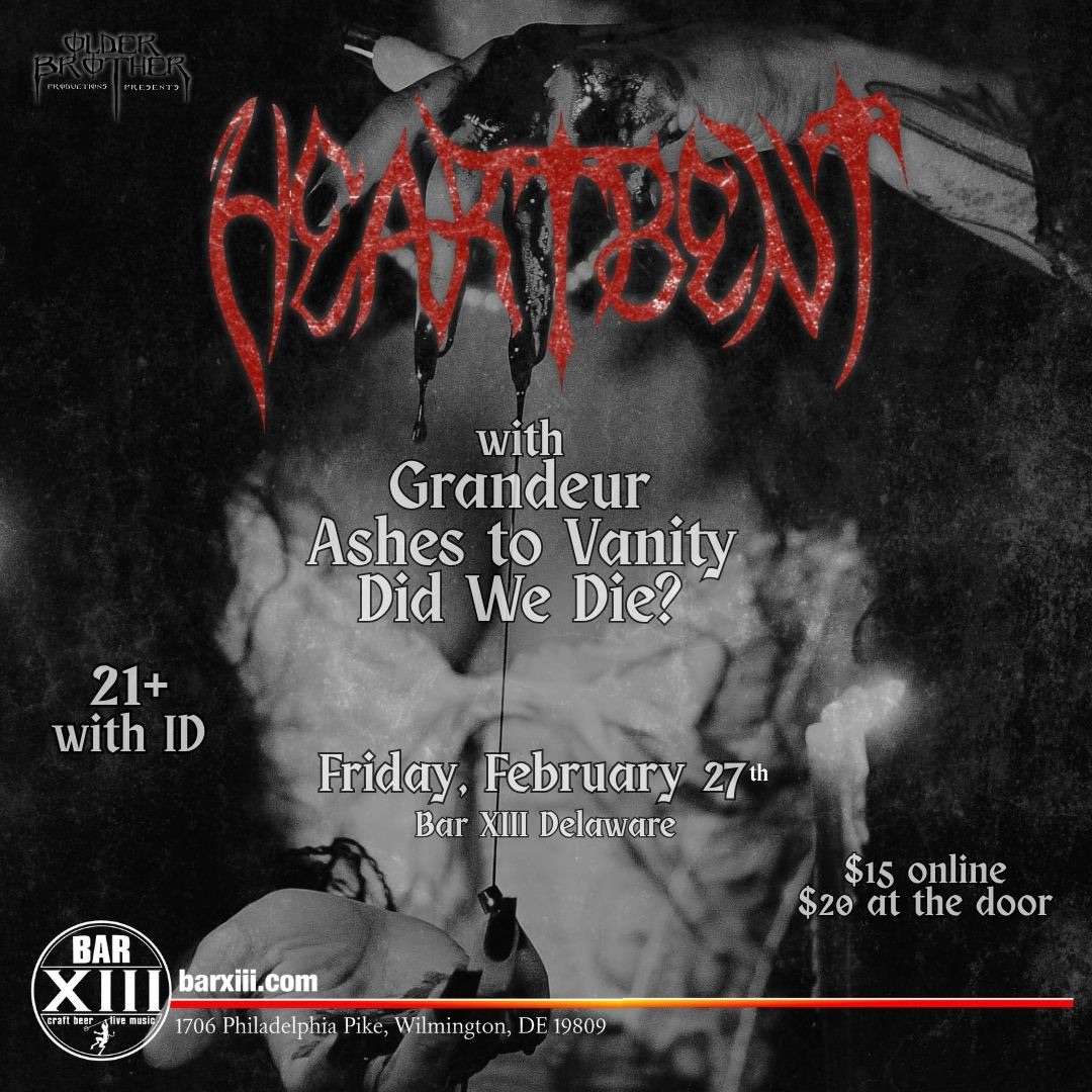 Come catch Heartbent with Grandeur, Ashes to Vanity, & Did We Die at Bar XIII Delaware on February 27th! https://www.eventbrite.com/e/1975825220422?aff=oddtdtcreator