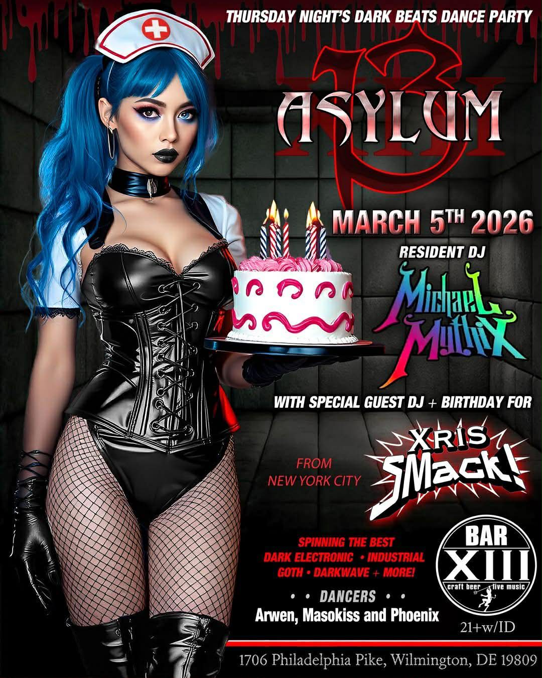 Step into the darkness every Thursday night at the Asylum 13 Dark Beats Dance Party!